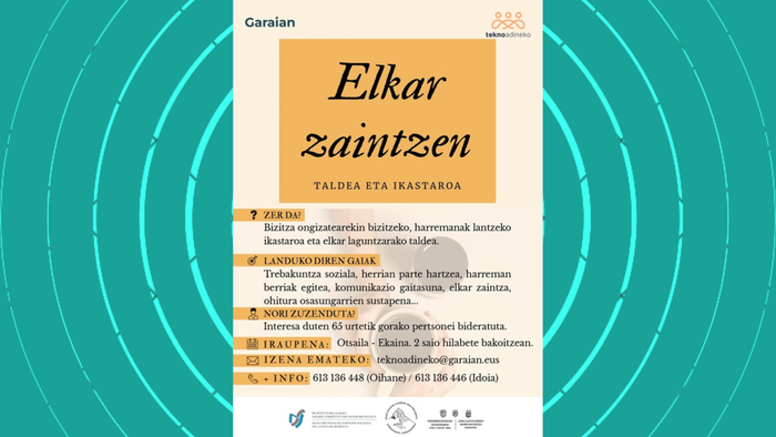 Gaur goizean irratian Iker Unanua (Teknoadineko) elkarrizketatu dugu martxan jarriko duten "Elkar Zaintzen" proiektuaren berri emateko. Taldea sortzea bada ere, ikastaroak eskeiniko dituzte. Taldearen proposamenak jasotzeko irekita daudela esan digu Ikerrek, bai eta beraiek proposatuko dituzten ikastaroak eskeiniko dituztela ere.