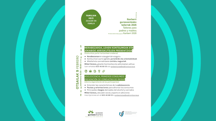 Josune Zabala (Gizarte zerbitzuak) eta Mikel Cerezo (gizarte-hezitzailea eta adikzioetan aditua) elkarrizketatu ditugu arratsaldeko tailerra dela eta.