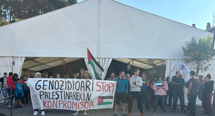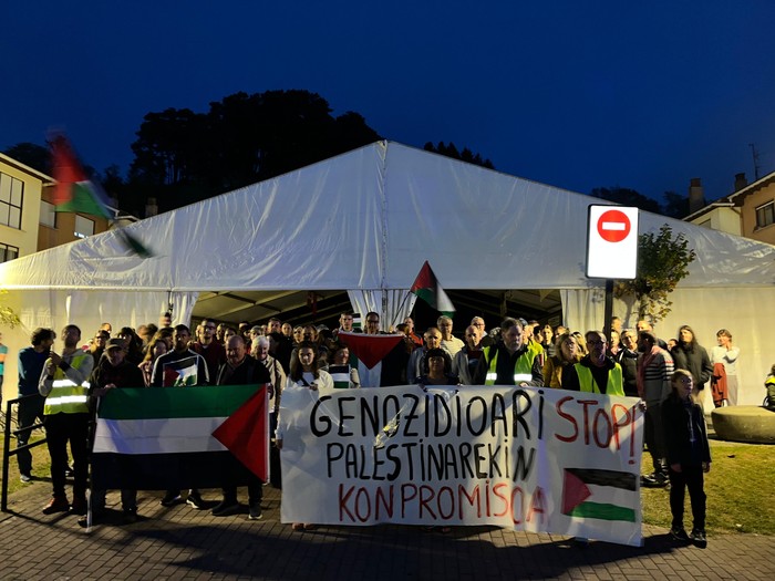 Euskal Herrian, hala ere, Palestinaren aldeko aldarriak ozen entzun ziren atzo, sindikatuek eta beste hainbat eragilek deitutako lanuzte egunean.