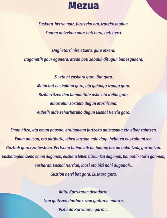 Atzera begira, Maialen Begiristain AEKren Nazio Kontseiluko kideak, helmuga zein den argi adierazi du. "Euskara herritar guztiontzako aterpe ireki eta erosoa da", azaldu du Begiristainek. Berdin dio zein den "jatorria, azalaren jatorria edo zein den euskararekiko ezagutza", gaineratu du. Eta bertan, "denon artean eraikiz gizarte zapalkuntza orotatik babestuko gaituen komunitate berdinzale eta zabala aurkituko dugu, gure herrian, euskararen herrian, mundu oso bat sartzen delako".