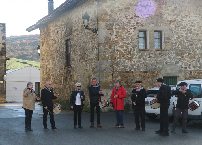 Ezkerretik hasita hirugarrena Arantxa Oliden txistua jotzen musika taldekideekin.