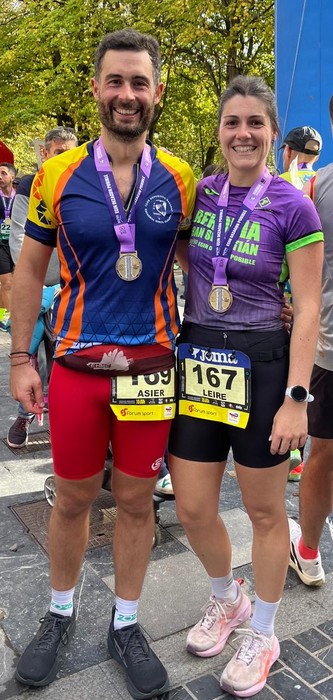 Asier Elizalde (Betelu) eta Leire Aizpurua (Andoain) lasterketa egin eta gero.